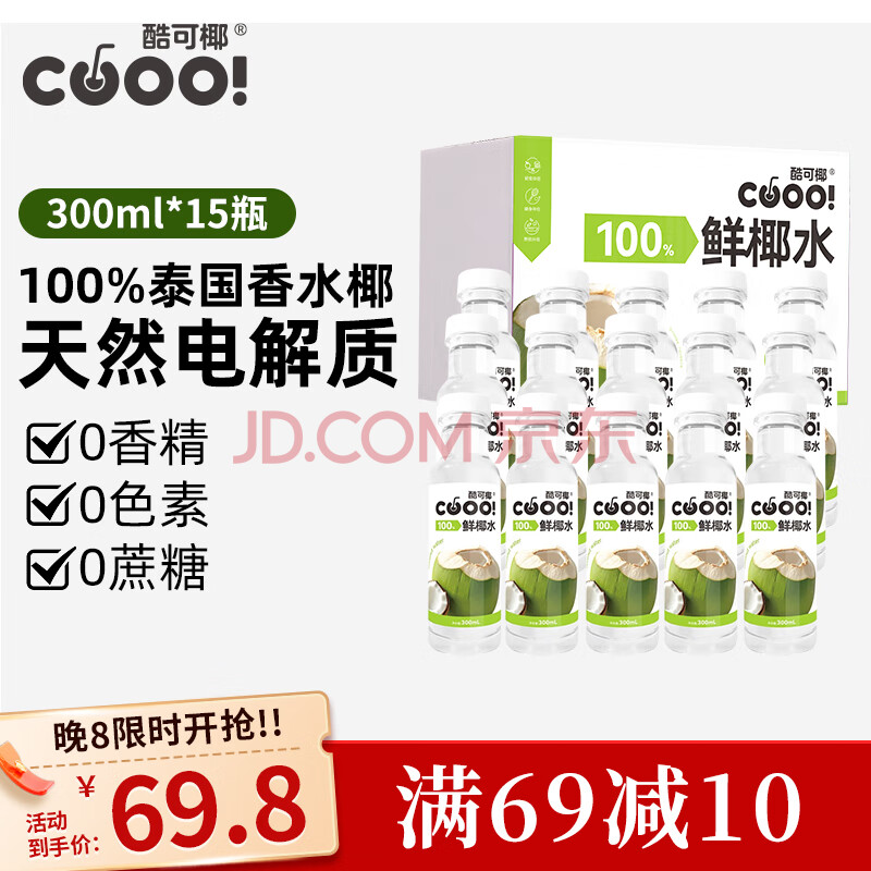 商品名称:酷可椰100%鲜椰水300ml*15瓶整箱非浓缩还原鲜椰汁天然电解质水年货礼盒