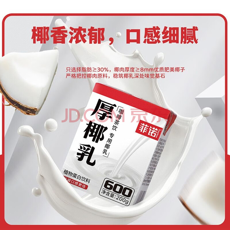 商品名称:菲诺厚椰乳mini 椰奶椰汁生椰拿铁咖啡搭配的牛奶饮料200g*21盒整箱