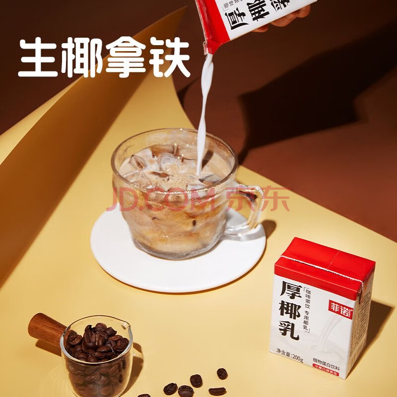 > 菲诺厚椰乳mini 椰奶椰汁生椰拿铁咖啡搭配的牛奶饮料200g*21盒整箱