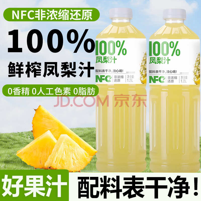 > 珍珠湾 NFC凤梨汁1.25L大瓶装100%纯果汁夏日解渴解暑解腻家庭畅饮料品