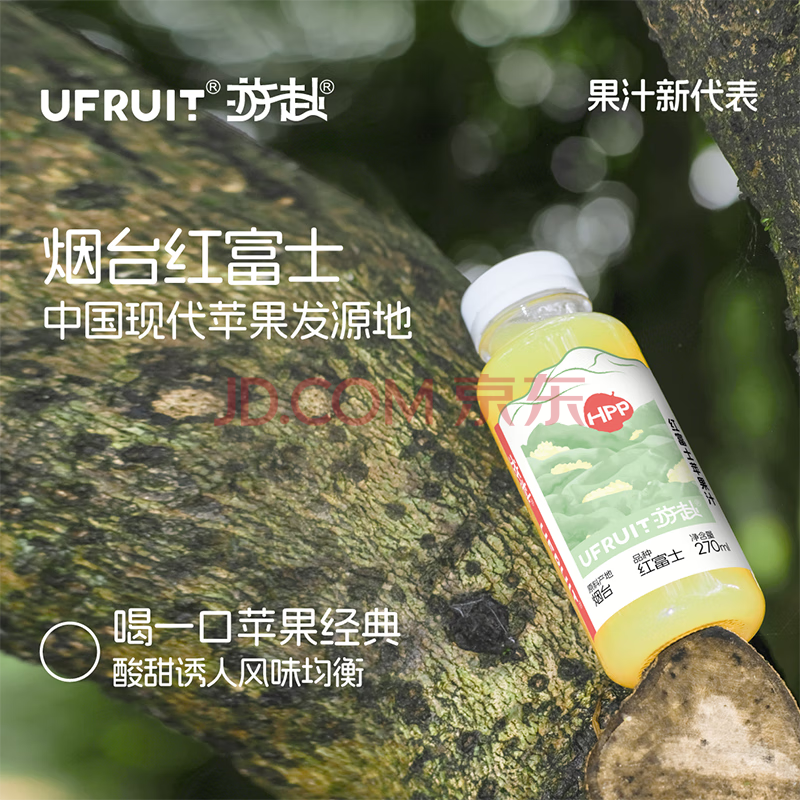 商品名称:UFRUIT游赴100%HPP果汁饮料【3红富士+3桃汁+2王林】*270ml 精美礼盒装
