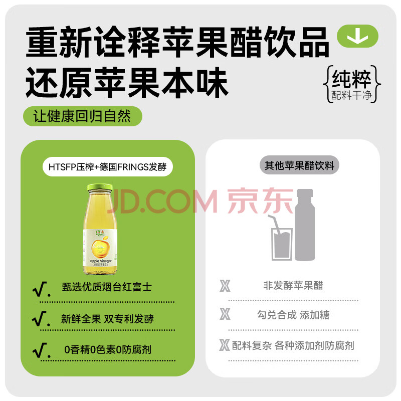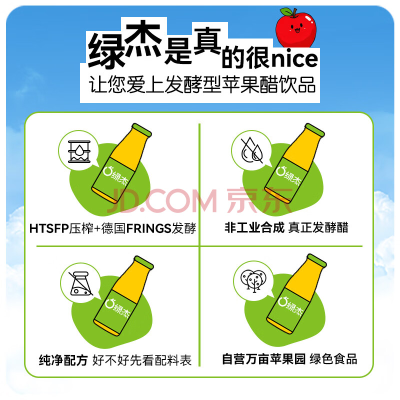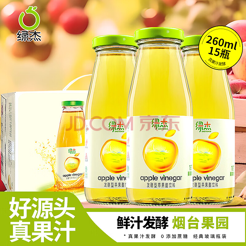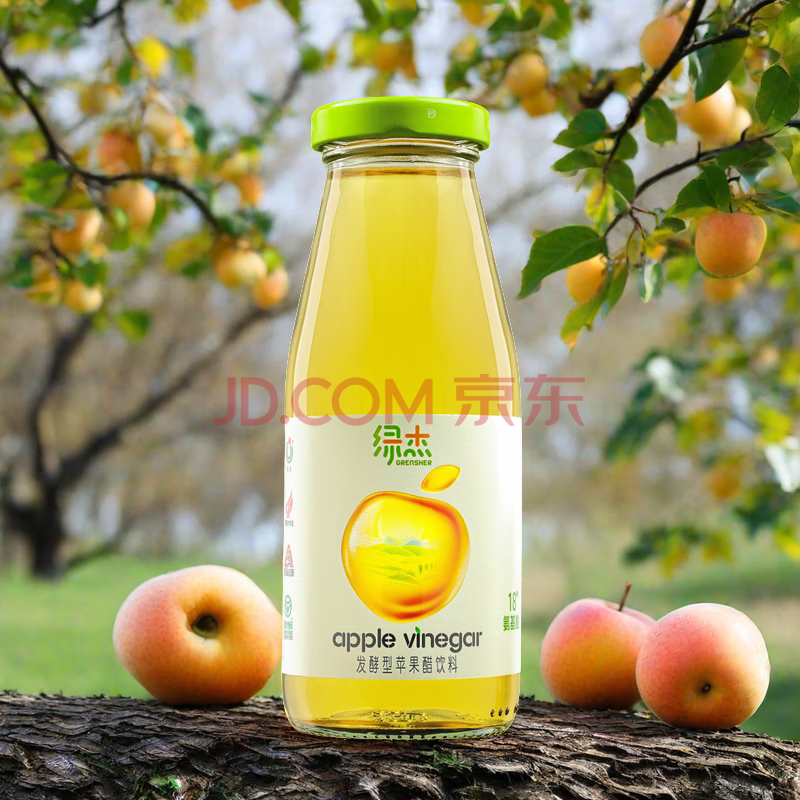 商品名称:绿杰发酵型苹果醋饮料260ml*15玻璃瓶装0蔗糖0脂肪酸甜爽口解腻饮料