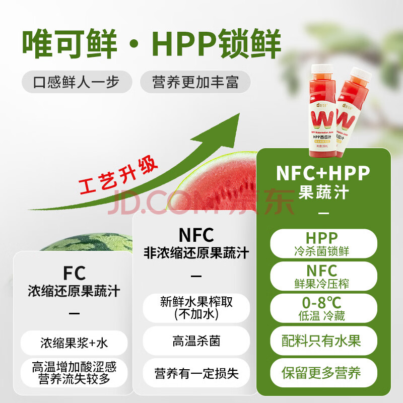 商品名称:唯可鲜西瓜汁100%HPP麒麟西瓜汁 鲜果汁 冷压榨果汁冷冻饮料 260ml*4瓶