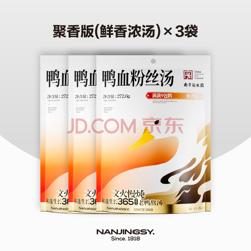 商品名称:园鲜香浓汤聚香版鸭血粉丝汤272.6g*3袋南京特产方便速食米粉米线