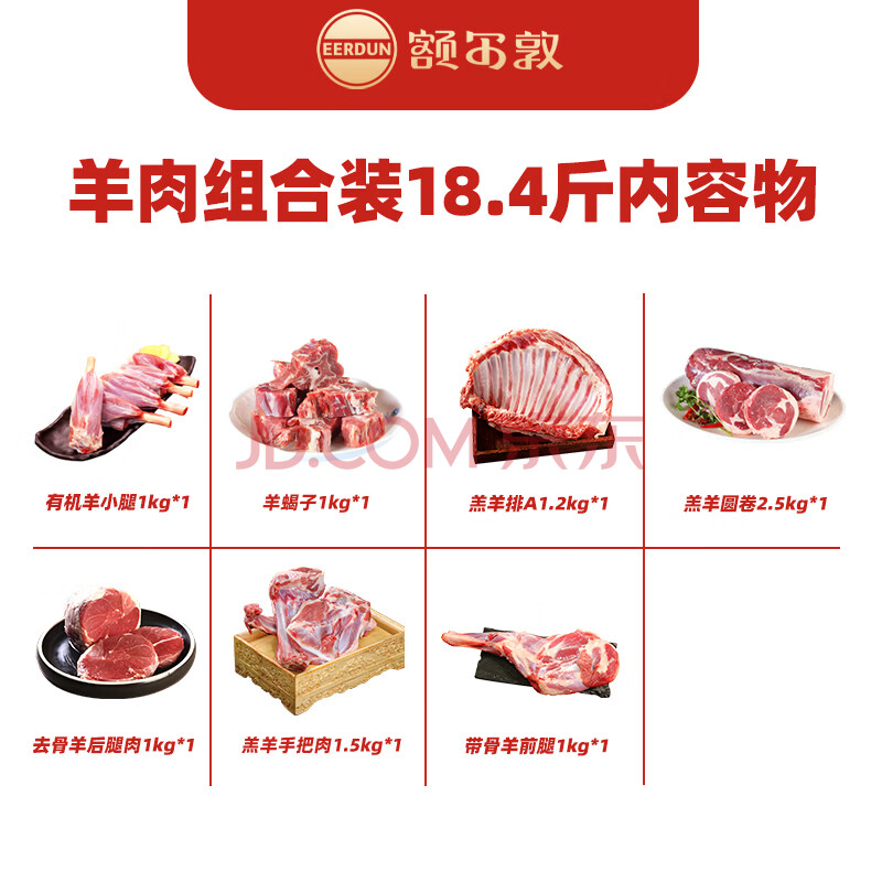 商品名称:额尔敦锡盟草原草饲羔羊肉组合套餐18.4斤 节日生鲜送礼 源头直发