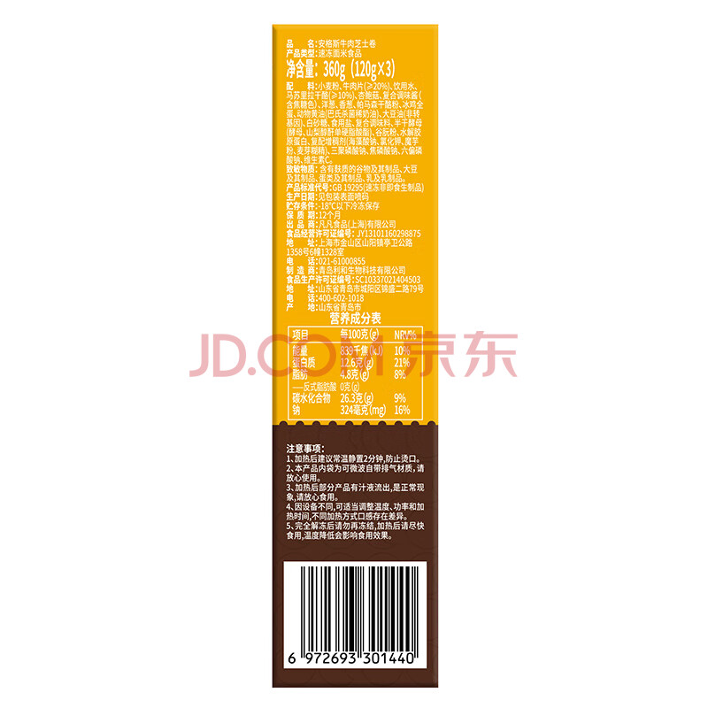 商品名称:朕宅安格斯芝士牛肉卷120g*3 半成品微波即食儿童早餐方便速食