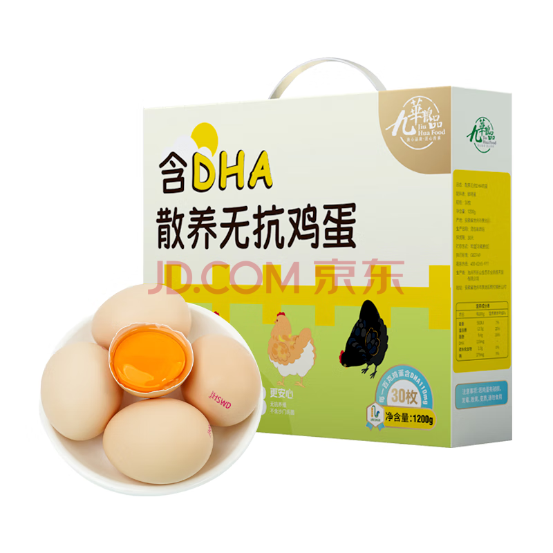 商品名称:九華粮品散养无抗DHA鸡蛋30枚 净重2.4斤 礼盒 无抗散养土鸡蛋 源头直发