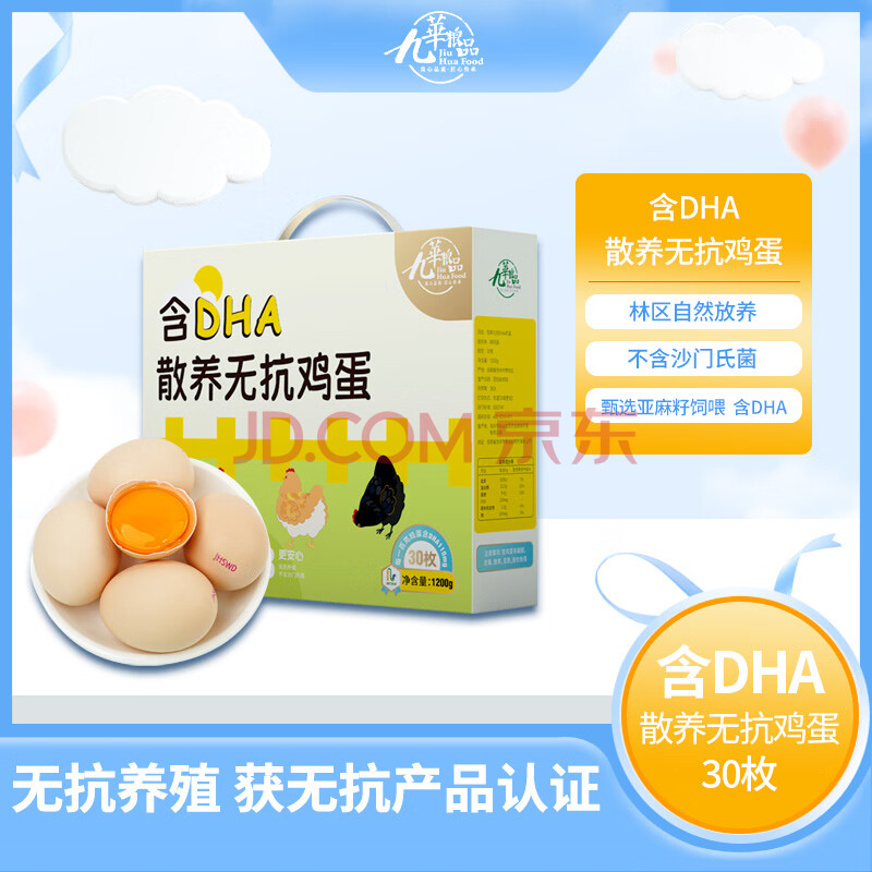 > 九華粮品散养无抗DHA鸡蛋30枚 净重2.4斤 礼盒 无抗散养土鸡蛋 源头直发