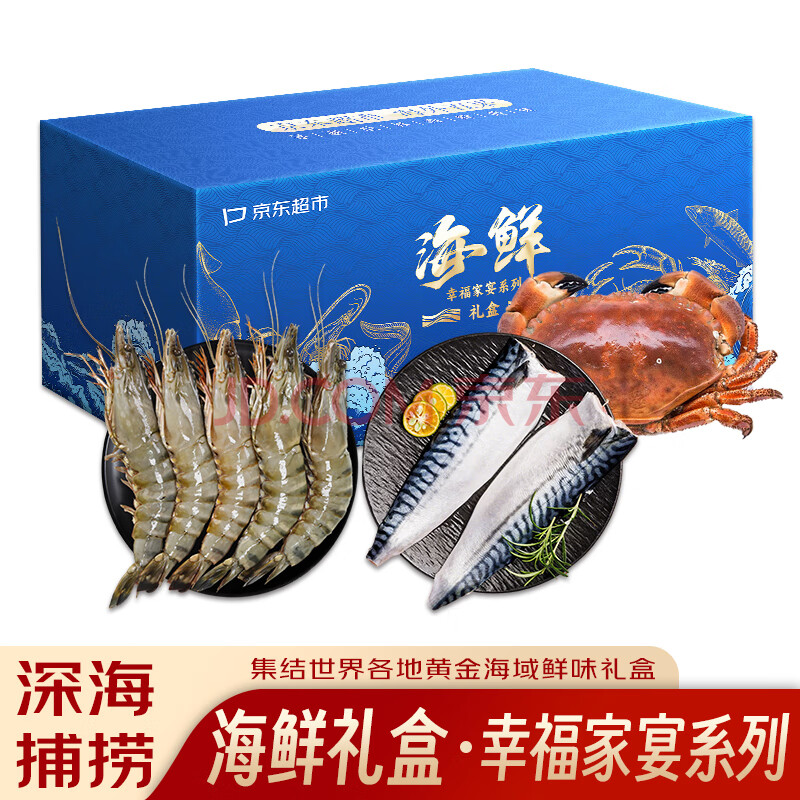 京东超市 海鲜礼盒(幸福家宴系列)含面包蟹 黑虎虾 青花鱼等 净含量7斤 源头直发包邮