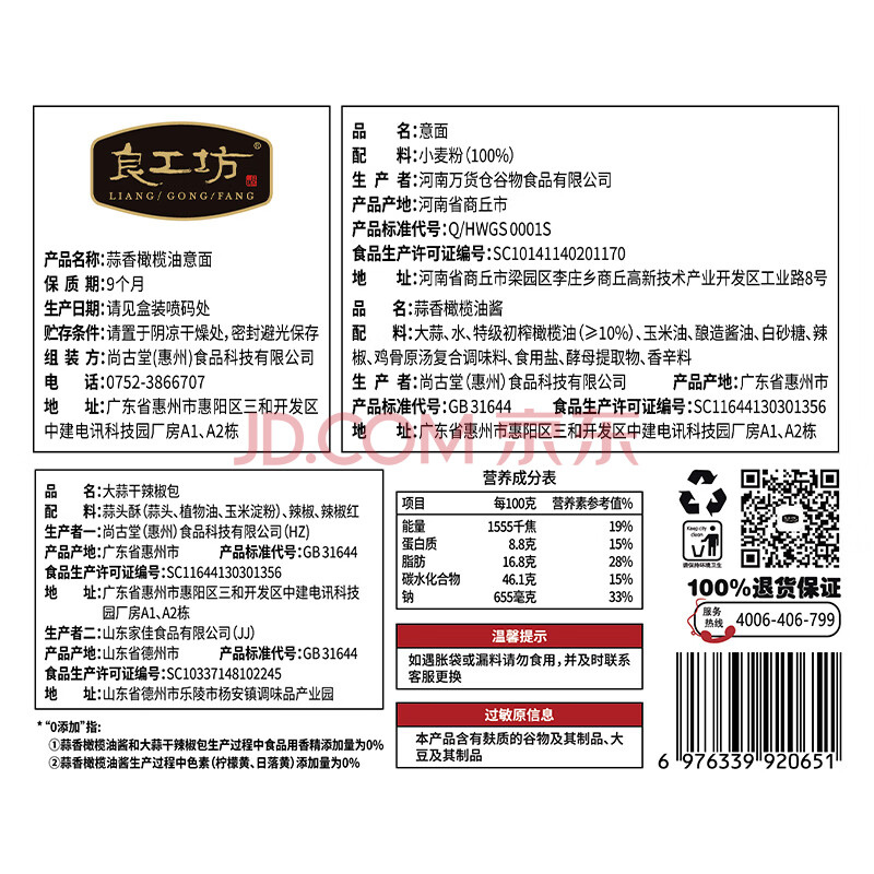 商品名称:良工坊蒜香橄榄油意大利面154g意面方便面速食意大利面儿童方便速食早餐