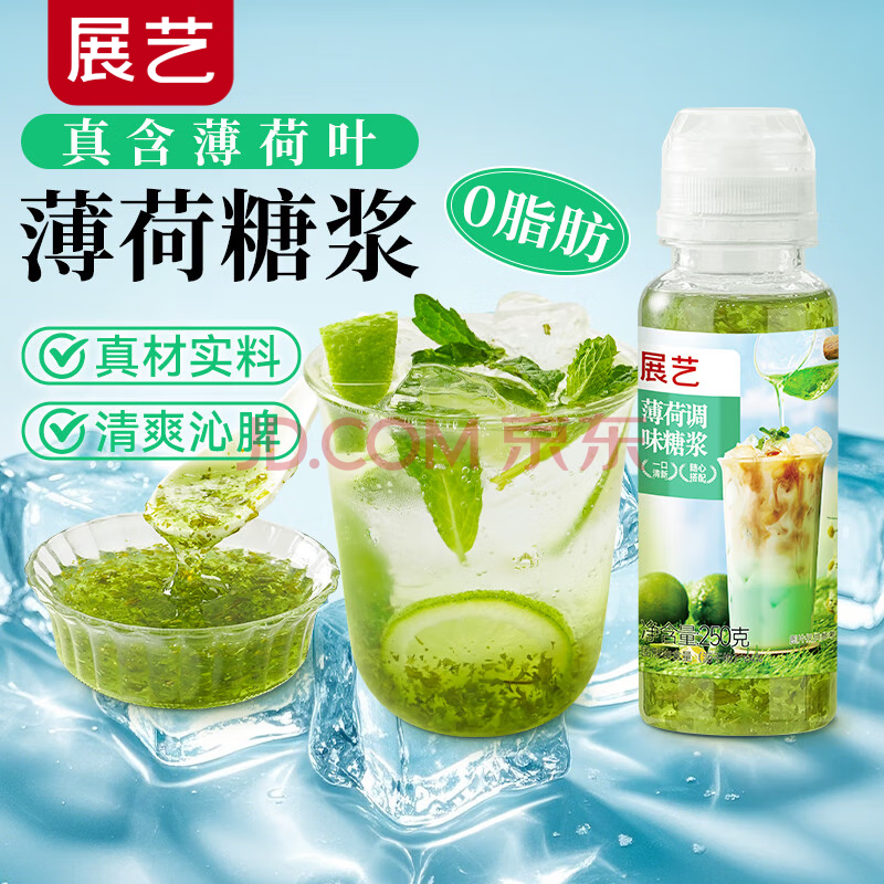 商品名称:展艺薄荷调味糖浆250g奶茶店调酒咖啡莫吉托风味气泡水 绿薄荷糖浆