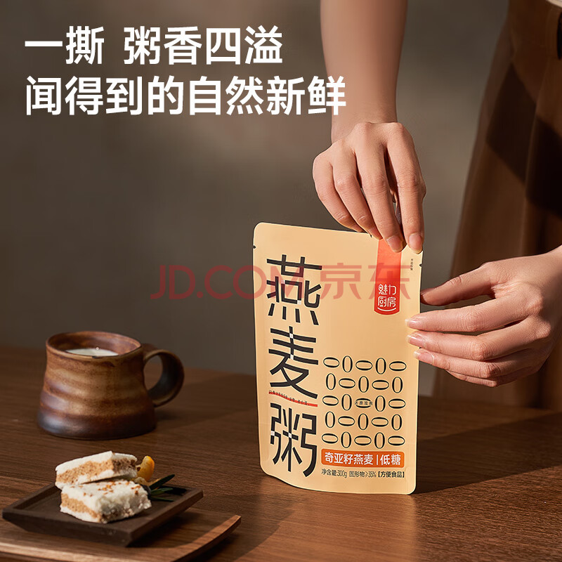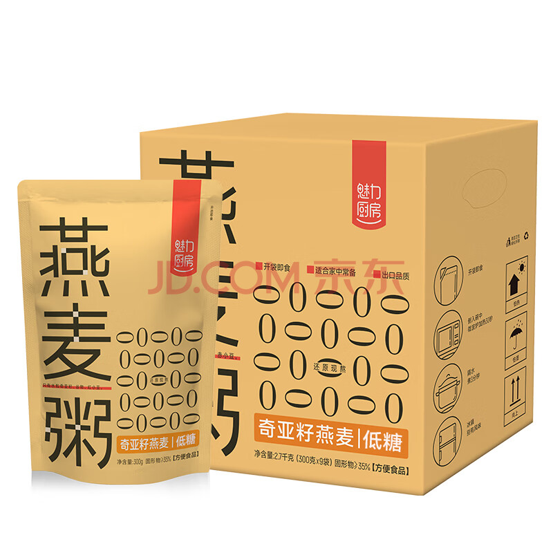商品名称:魅力厨房 奇亚籽燕麦粥300g*9袋 开袋即食方便速食家常粥 配料干净