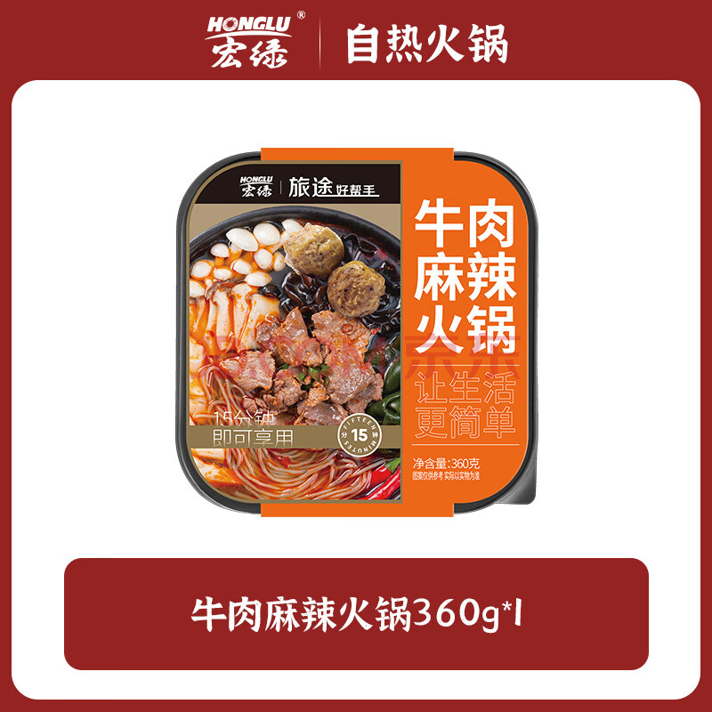 > 宏绿(HONGLU)自热火锅 方便速食户外自煮小火锅懒人食品夜宵 牛肉火锅360g