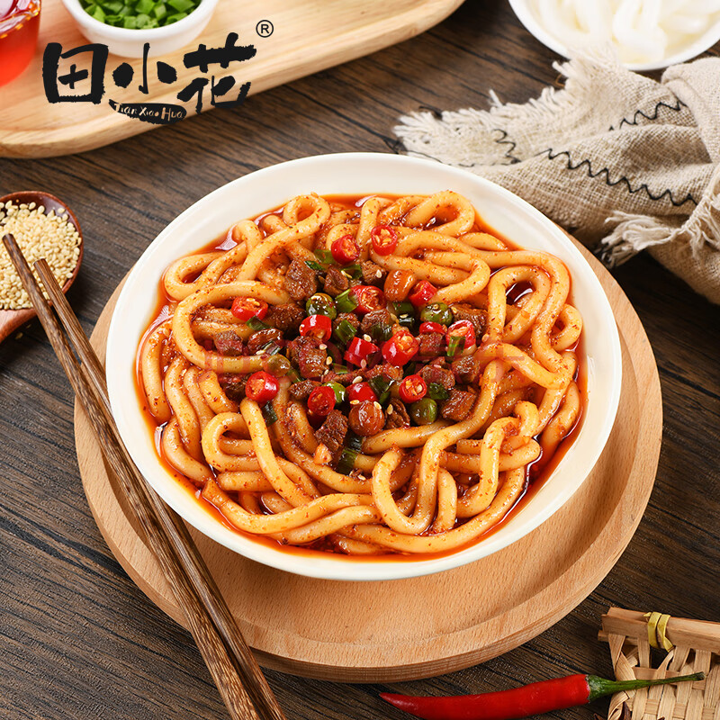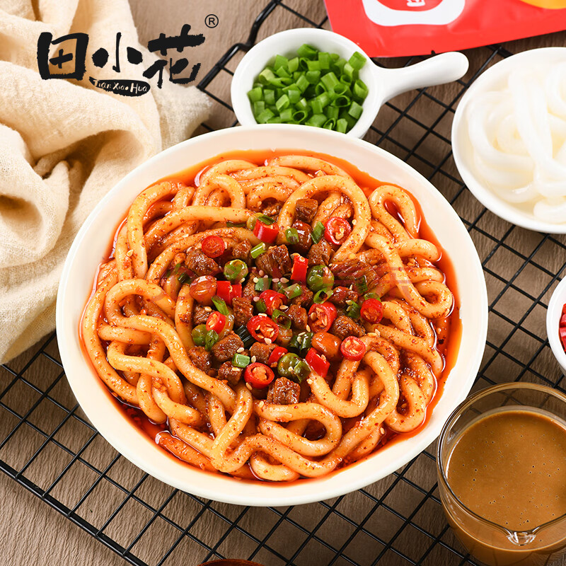 > 田小花0脂流汁土豆粉拌粉酸辣味 带调料干拌红油酸辣宽粉宵夜方便速食