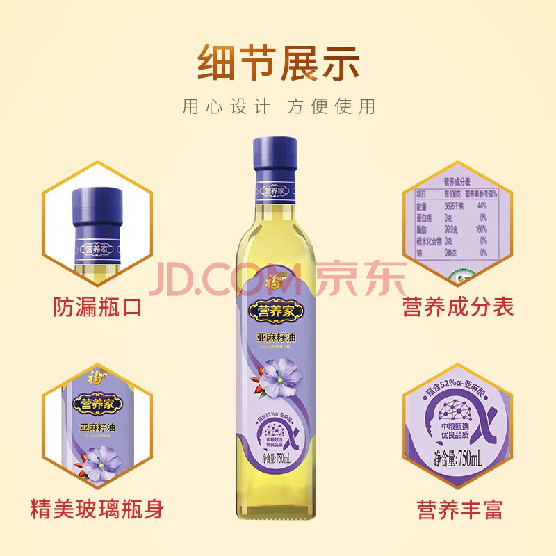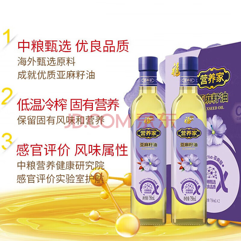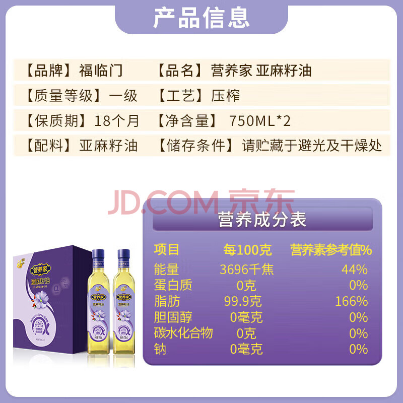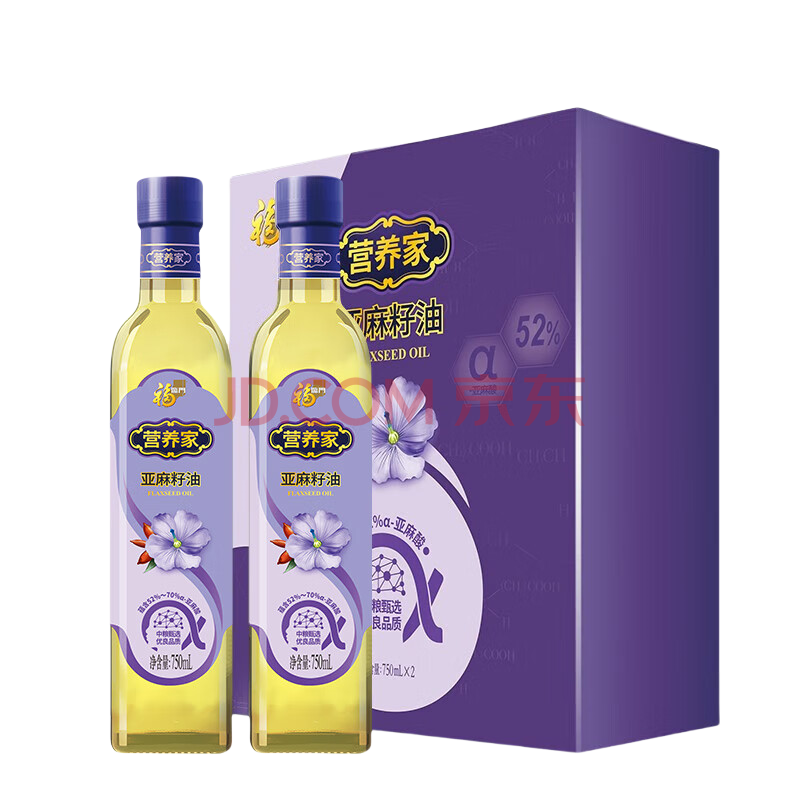 商品名称:福临门 食用油 亚麻籽油套盒750ml*2瓶 厨房炒菜粮油(效期至26年5月)