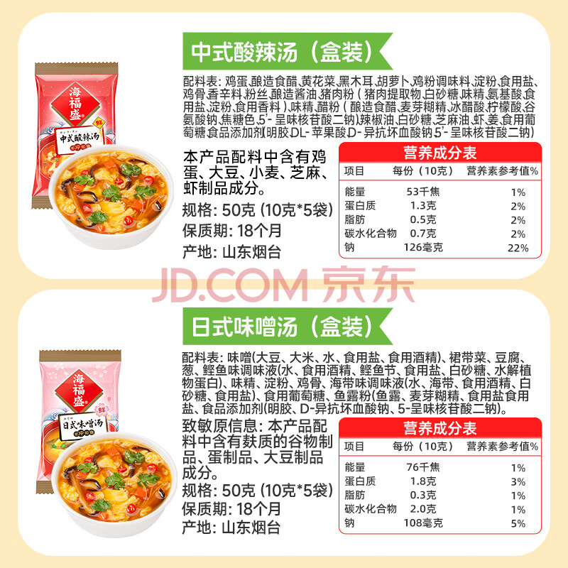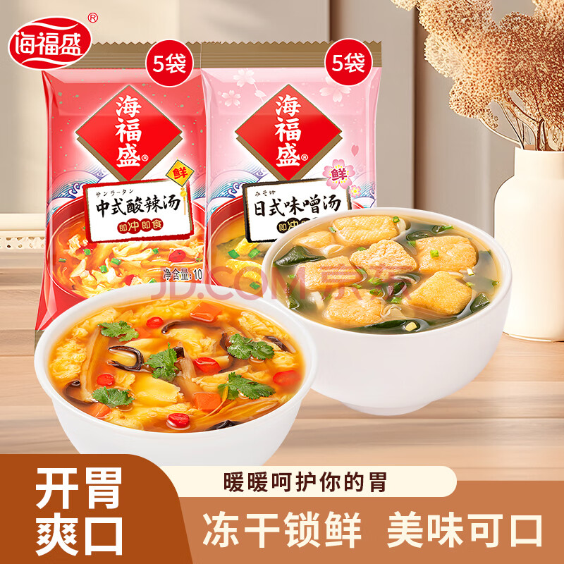 商品名称:海福盛方便速食汤速食汤FD冻干汤速溶酸辣汤日式味增汤2味10袋100g