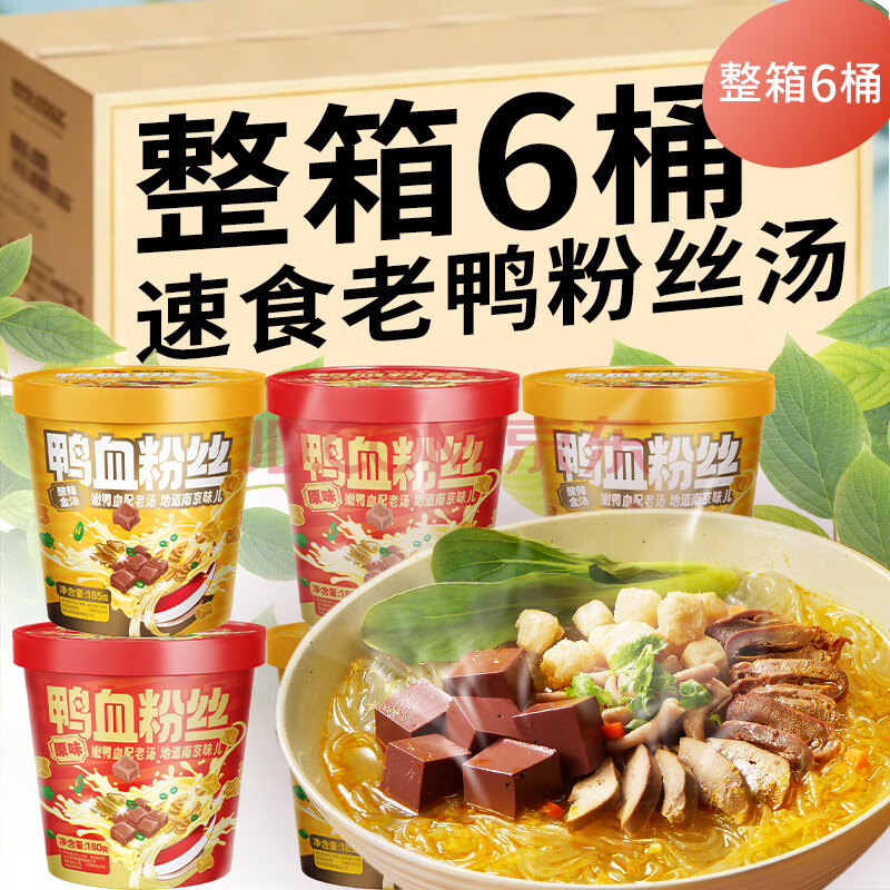 > 全乐食品南京原味鸭血粉丝汤180g*6桶螺蛳粉米线土豆粉酸辣粉方便速食
