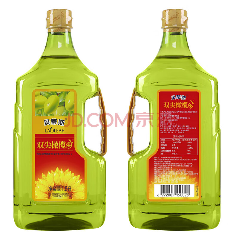 商品名称:贝蒂斯 (BETIS)双尖橄榄+ 葵花橄榄调和油1.6L*2礼盒 植物油