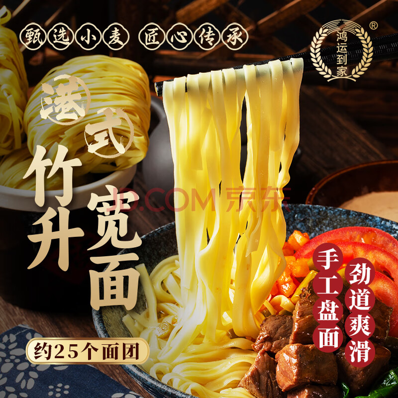 商品名称:鸿运到家 手工竹升面宽面 1500g 挂面云吞面龙须面银丝面港式面广东面