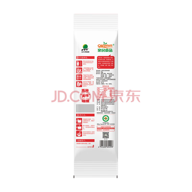 商品名称:亲民食品北大荒有机红豆薏米挂面350g*2袋方便面条面条挂面有机杂粮挂面