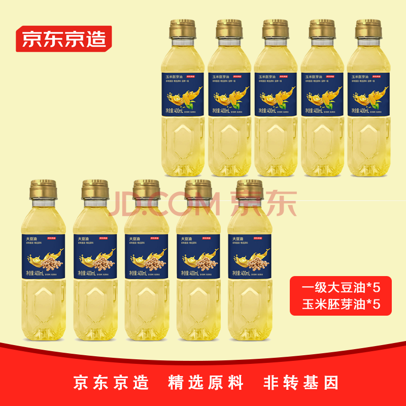 京东京造 非转基因大豆油400ml*5瓶+玉米胚芽油400ml*5瓶可送货上门 2.0