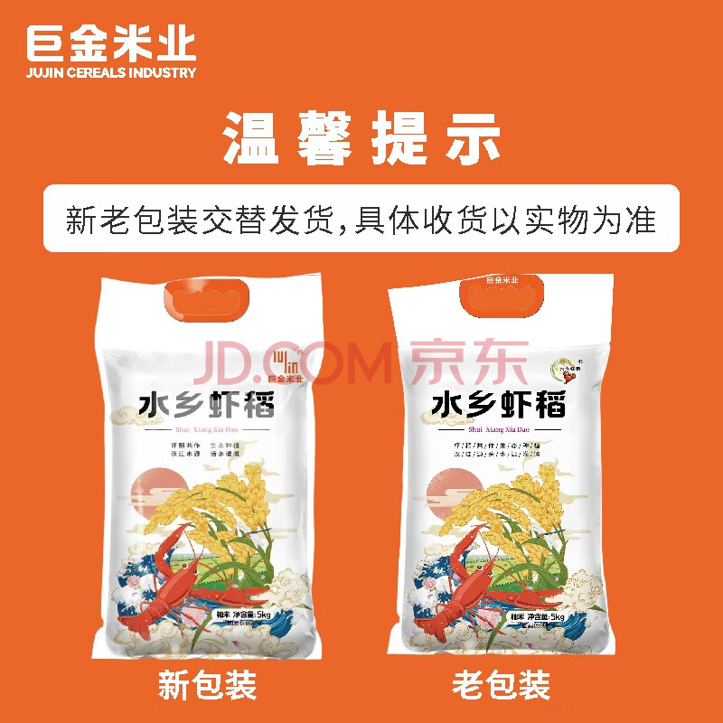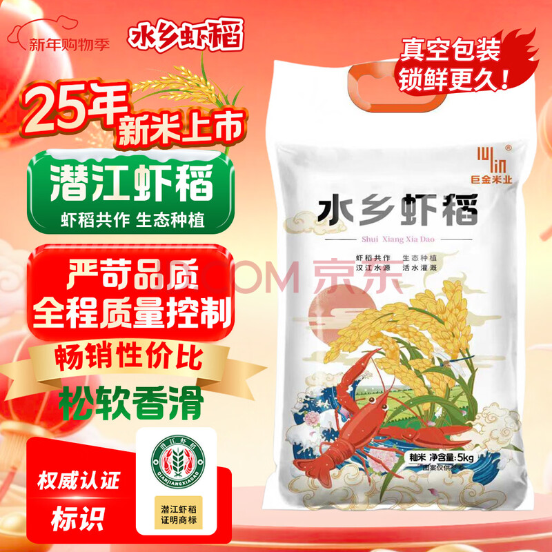 商品名称:巨金米业潜江水乡虾稻米10斤真空装 湖北大米 南方籼米油粘米 2025年新米
