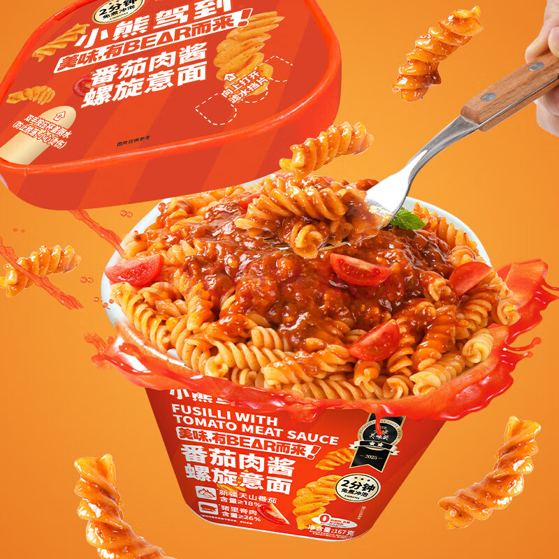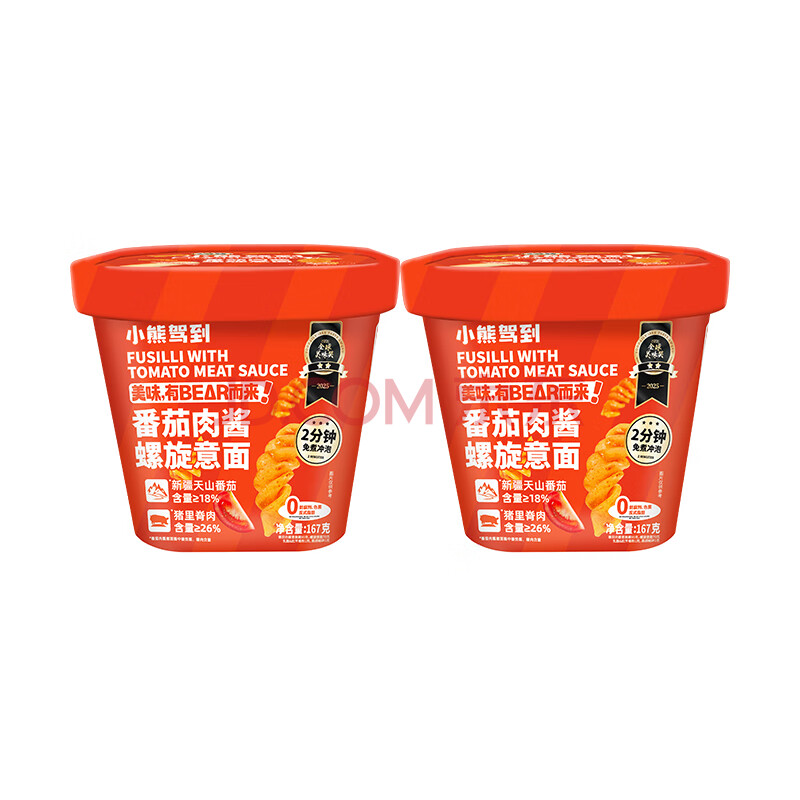 > 小熊驾到番茄肉酱冲泡螺旋意面167g*2盒 2分钟免煮方便面速食拌面意大利面