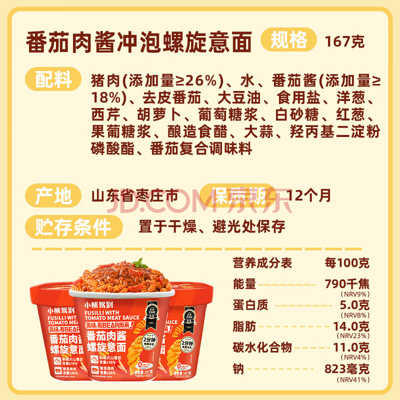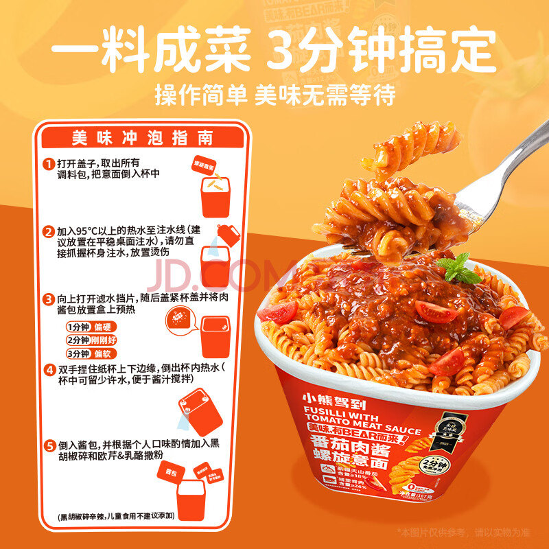 商品名称:小熊驾到番茄肉酱冲泡螺旋意面167g*2盒 2分钟免煮方便面速食拌面意大利面