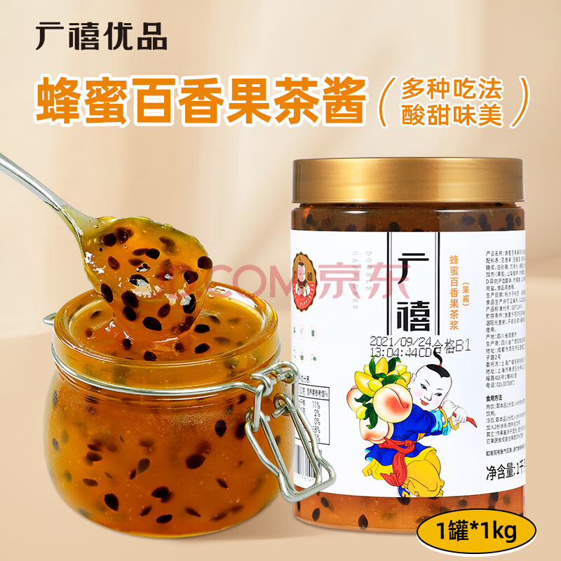 商品名称:广禧优品蜂蜜百香果茶浆1kg 蜂蜜柚子茶柠檬百香果茶冲饮酱水果茶罐装饮料