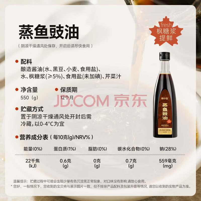 商品名称:林小生蒸鱼豉油550g【无添加防腐】枫糖浆风味特调 炒菜凉拌提鲜调味品