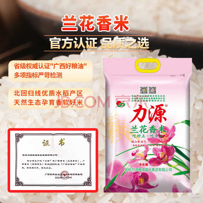 商品名称:力源兰花香米10斤 南方长粒大米2025京东新米广西好粮油 源头直发包邮