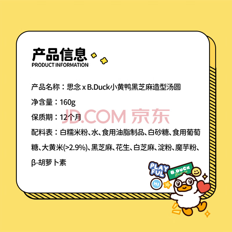 商品名称:思念xBDuck小黄鸭黑芝麻汤圆160g10颗 下午茶早餐速冻元宵年货送礼