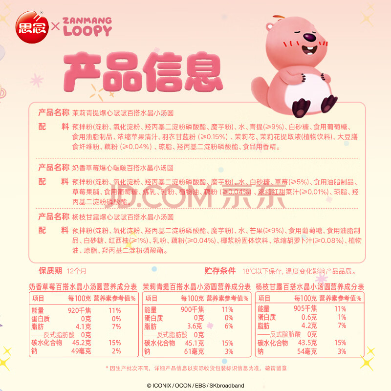 商品名称:思念【Loopy】爆心啵啵百搭水晶小汤圆240g62颗 早餐元宵年货小圆子