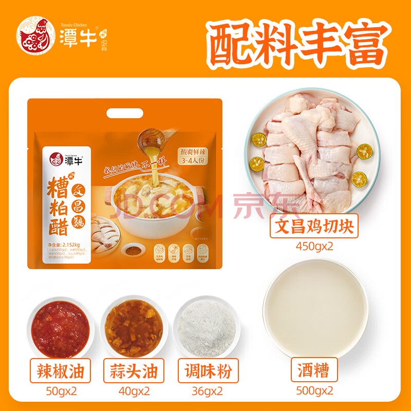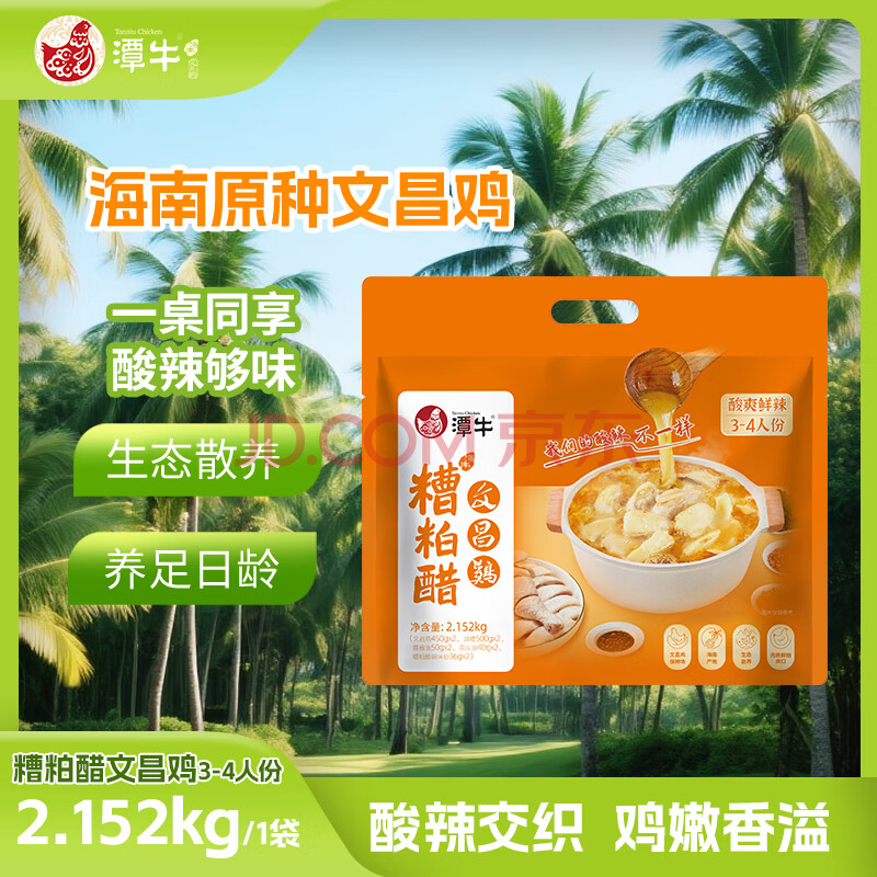商品名称:潭牛海南糟粕醋文昌鸡套餐4.304斤 酸辣火锅汤底 年货礼盒 冷冻