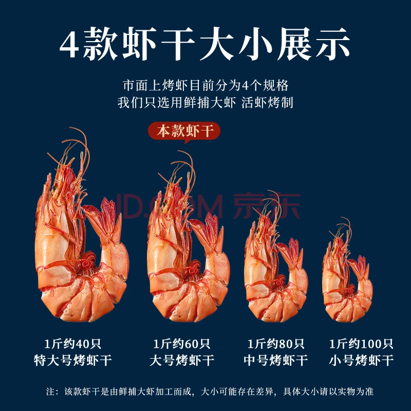 海赋 山东 即食大虾干烤九节虾干净重1斤【约56-68只】 源头直发
