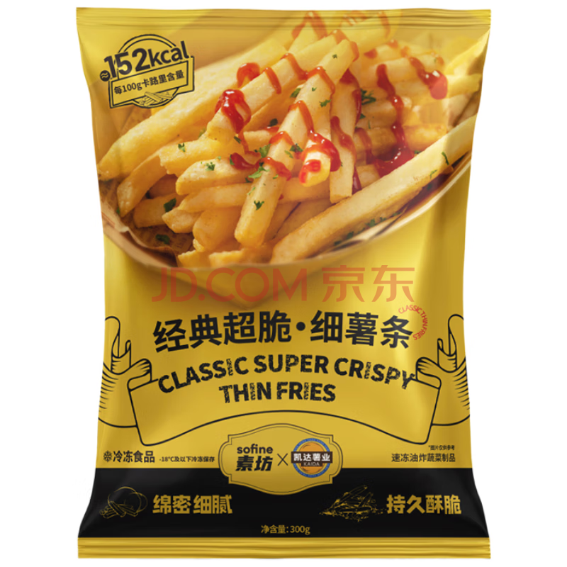 商品名称:素坊(Sofine)经典超脆细薯条 土豆裹粉冷冻半成品空气炸锅油炸食品预制菜 300g