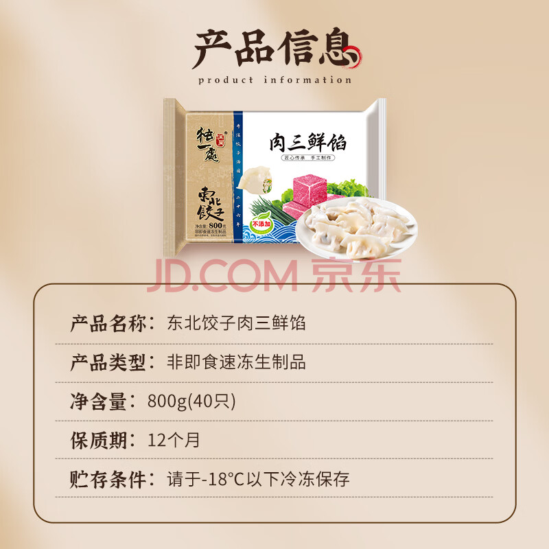 商品名称:润昊独一处东北水饺 肉三鲜 (鲜肉/韭菜/虾仁) 800g40只 速冻饺子蒸饺煎饺