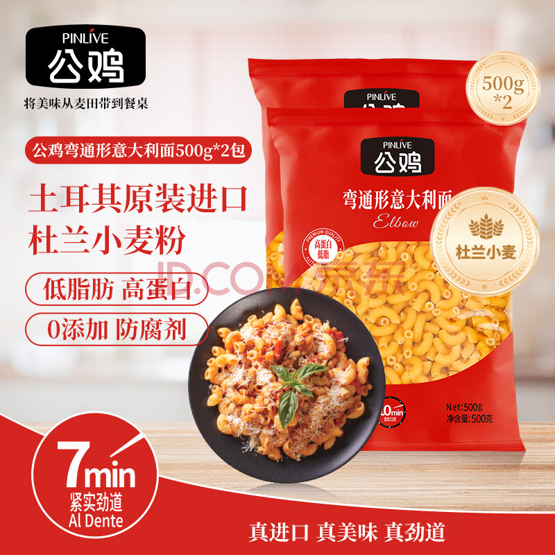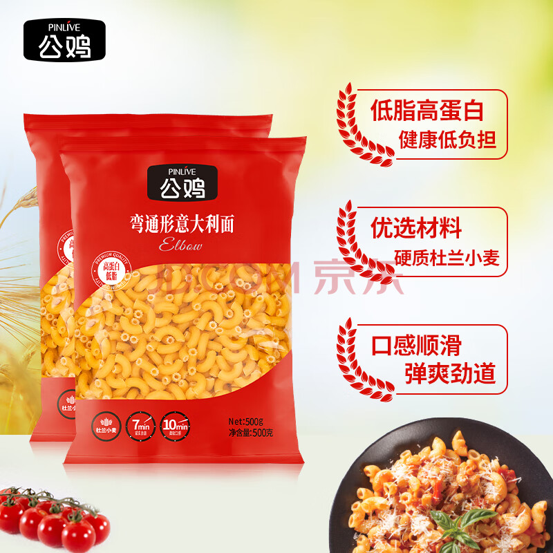 > 公鸡传统意面低脂弯通形意大利面500g*2袋意粉速食儿童通心粉面条礼品