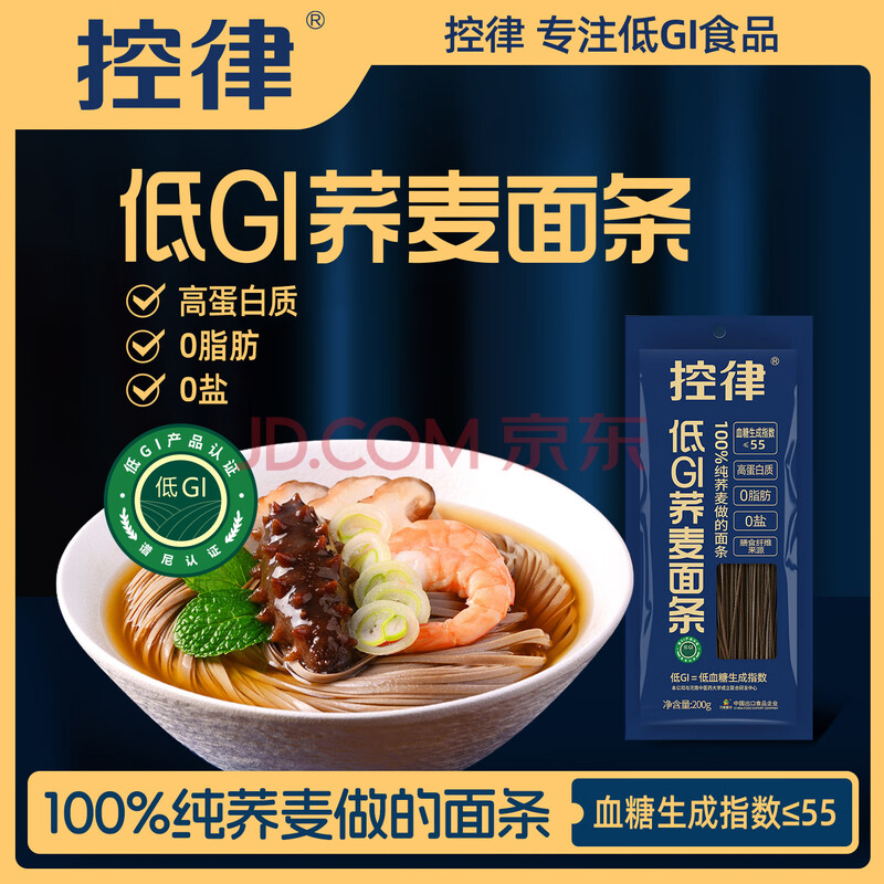 商品名称:马甲豹控律100%纯荞麦面条0脂低GI无添加老年粗粮孕期轻食挂面200g
