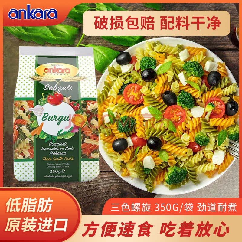 商品名称:安卡拉三色螺旋蔬菜意大利面 350g 土耳其进口意面意粉通心粉西餐面条