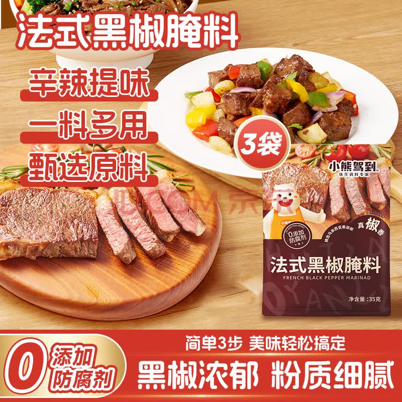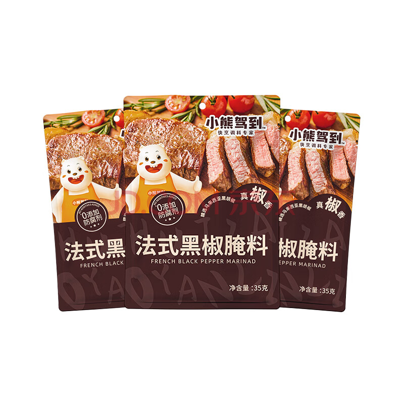 商品名称:小熊驾到0添加防腐剂 法式黑椒牛排腌料35g*3袋 黑胡椒烤肉鸡翅烧烤调味料