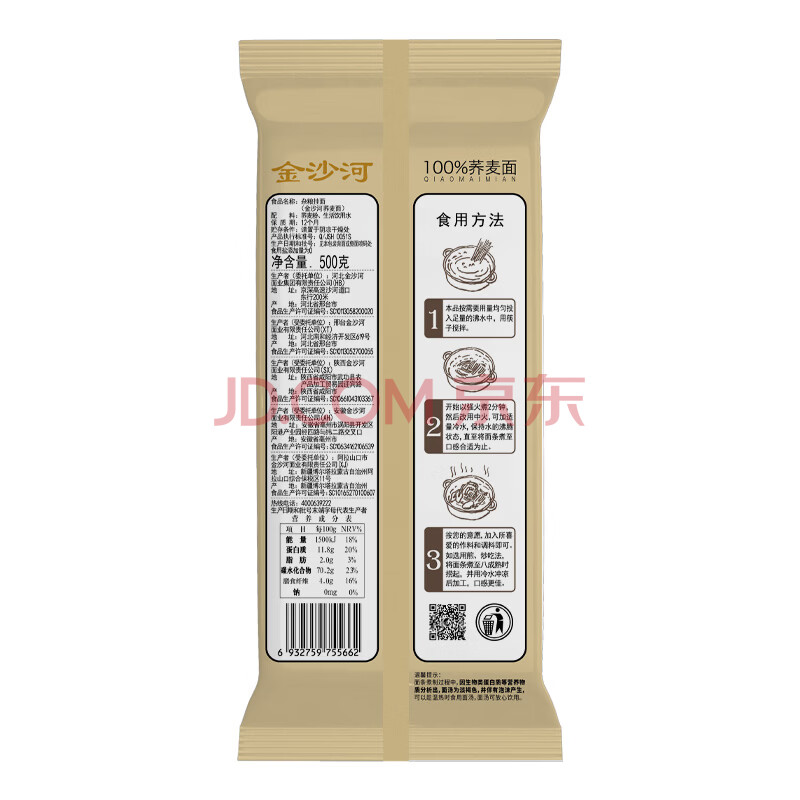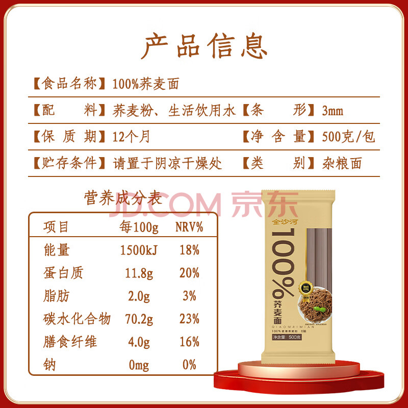 商品名称:金沙河100%荞麦面方便速食500g*1袋全麦荞麦低脂粗粮代餐饱腹感健身食品