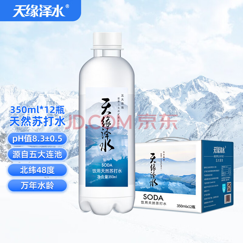 > 天缘泽水 五大连池天然苏打水 350ml*12瓶 小瓶天然弱碱性礼盒装