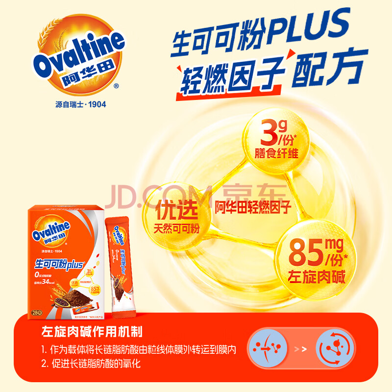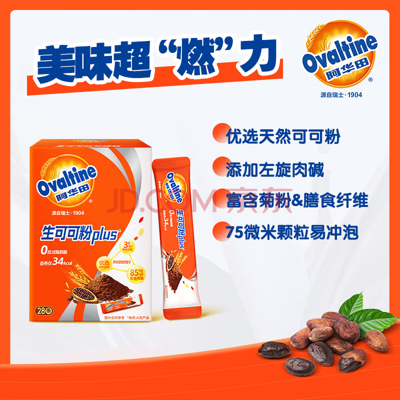 商品名称:阿华田生可可粉PLUS加强版10g*28条早餐代餐天然未碱化添加左旋肉碱饮料