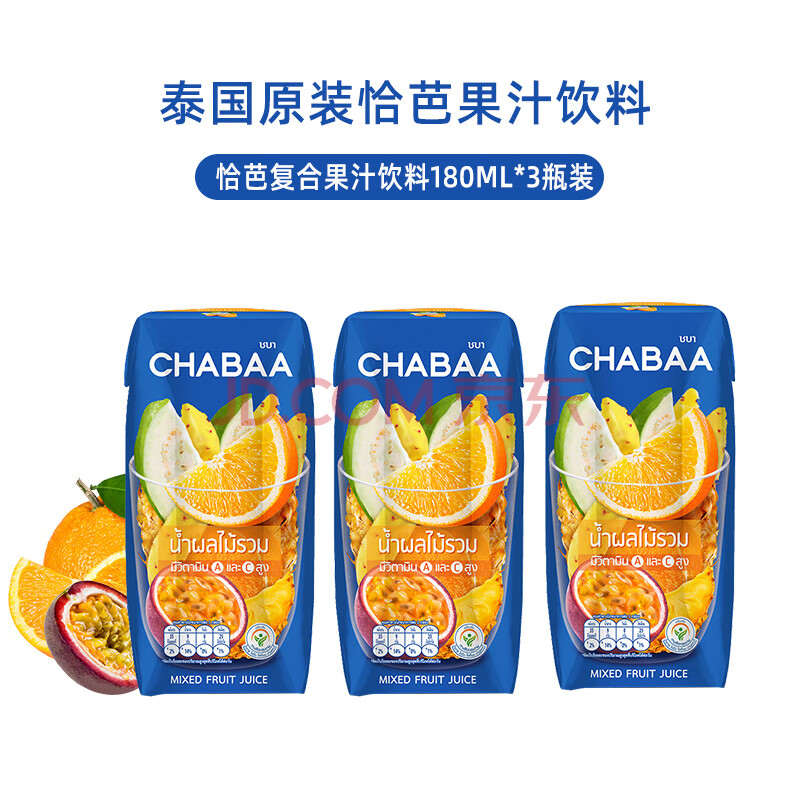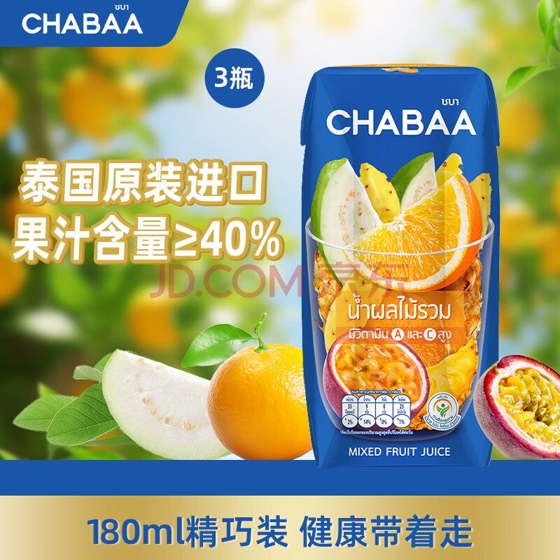 > CHABAA泰国CHABAA恰芭进口果汁0脂肪复合果汁饮料下午茶180ML*3