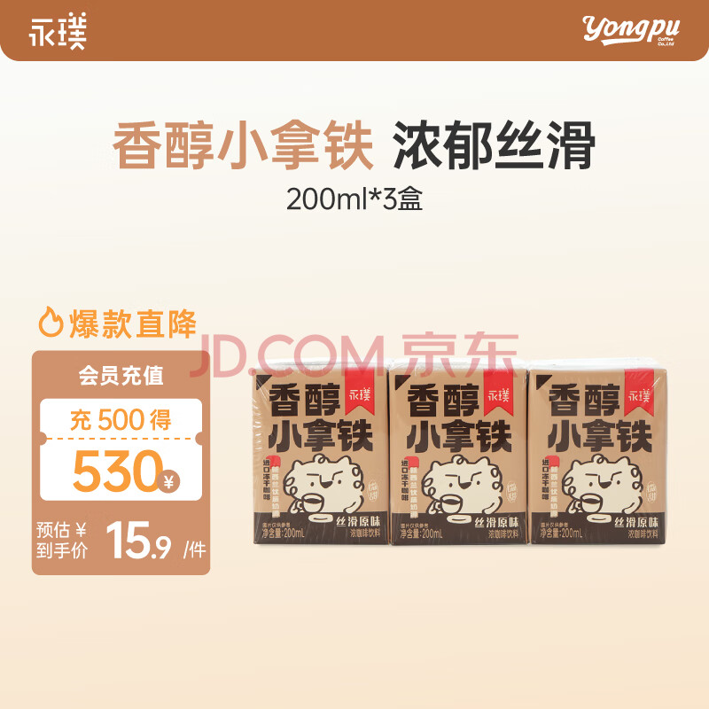 > 永璞即饮咖啡香醇小拿铁 丝滑原味浓咖啡饮料 200ml*3盒