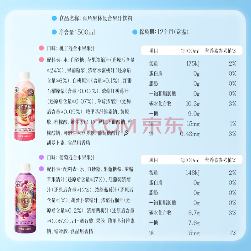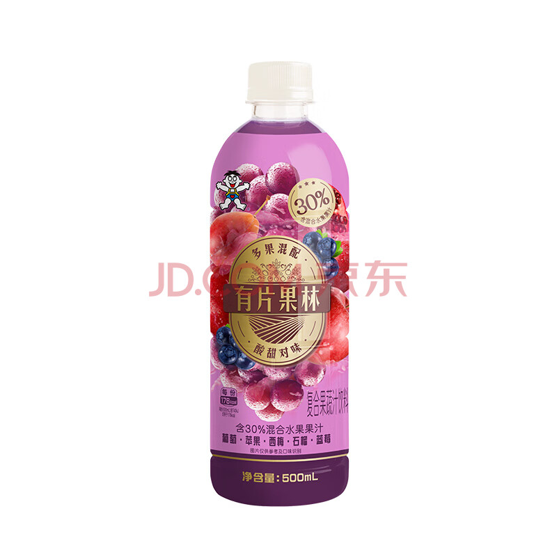 商品名称:旺旺有片果林葡萄味 果汁饮料 混合水果口味 500ml*15瓶 年货整箱装