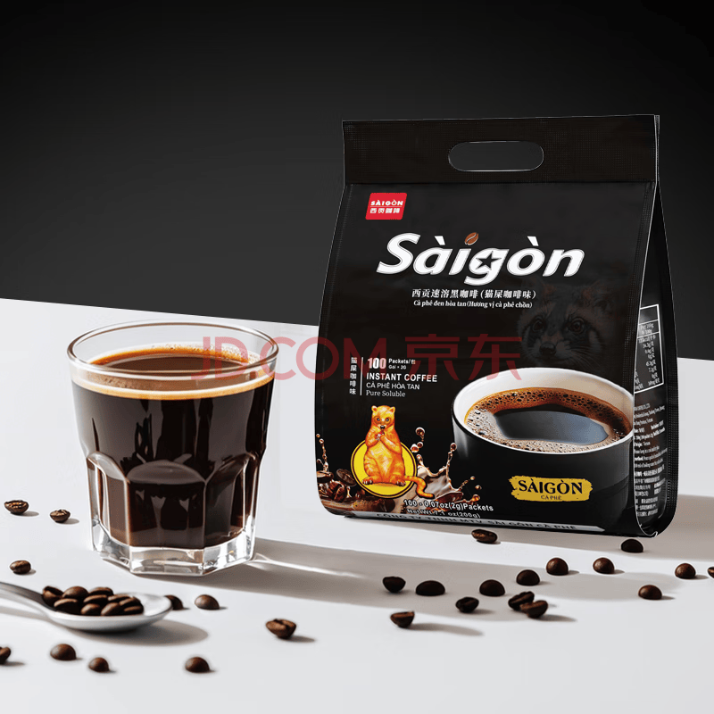 > 西贡美式速溶0蔗糖低脂健身猫屎咖啡味黑咖啡200g(2g*100包)