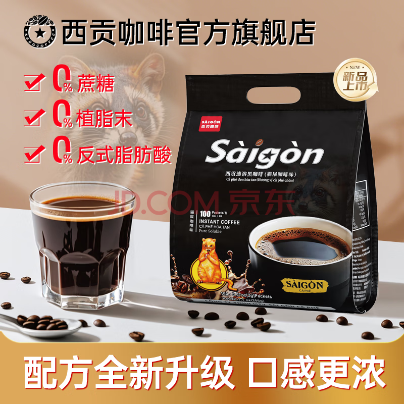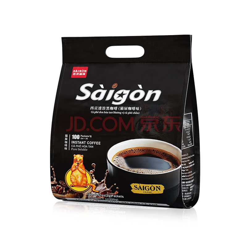 商品名称:西贡美式速溶0蔗糖低脂健身猫屎咖啡味黑咖啡200g(2g*100包)