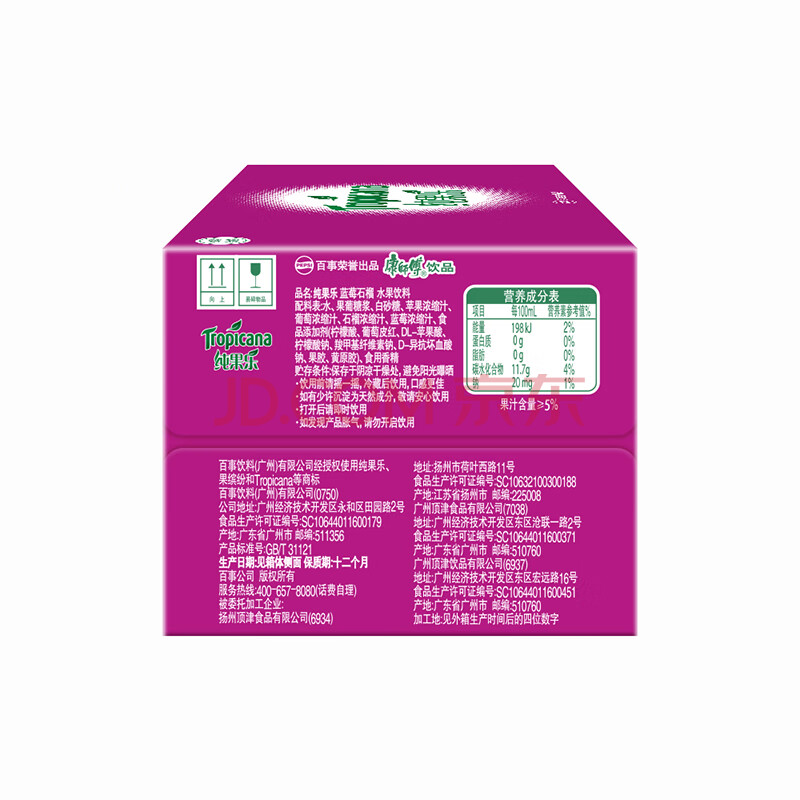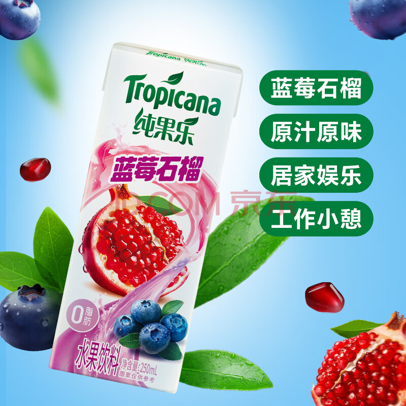 商品名称:百事可乐纯果乐 蓝莓石榴味250ml*24盒水果饮料 整箱装 春节年货 企业团购